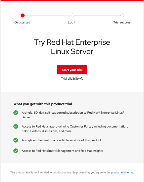 - 평가판 사이트 접속(https://www.redhat.com/en/products/trials)